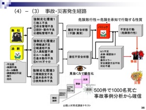 コマ1:職場環境、事故災害発生経路と将棋倒し分析