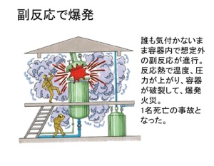 人が主要な要因である事故事例を紹介した後、バッチ反応の進行状態を勘違いして起きた爆発事故、知識の欠如とプラント全体への監視が疎かになったことが原因の事故などついて、深掘りした説明を元に、事故の現場にいた当事者の判断、事故に至る経緯を推測しながら自分事として事故を確認する。