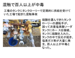 予期しない化学反応、不適切なプロセス設計などが要因となった事故事例を紹介した後、廃棄する過酸化物の爆発事故、スロップタンクを兼用する設計となっていた中間タンクの爆発事故、樹脂製造工場における重合槽の爆発事故などについて、深掘りした説明を元に、事故の現場にいた当事者の判断、事故に至る経緯を推測しながら自分事として事故を確認する。